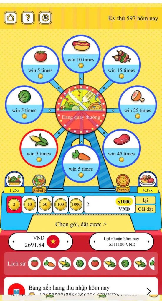 - Lưu ý cực kỳ quan trọng: hai cửa này chỉ được cược 100 hoặc 1000, và nếu kết quả là Salad hoặc Pizza thì dù bạn cược rổ rau hay đĩa thịt cũng KHÔNG thắng