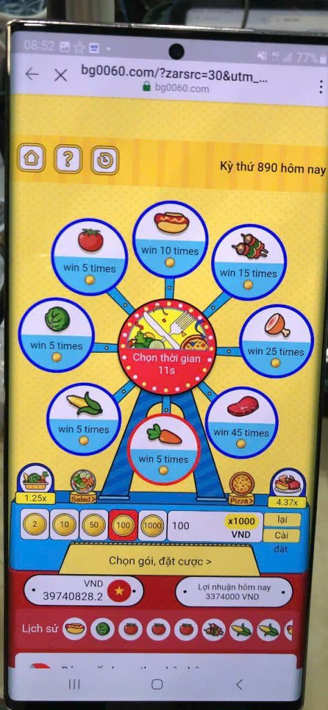 - Cực kỳ quan trọng: nếu kết quả là Salad hoặc Pizza, dù bạn cược rổ rau hay đĩa thịt cũng KHÔNG thắng. Đây là cái bẫy mà nhiều người mới hay mắc phải.